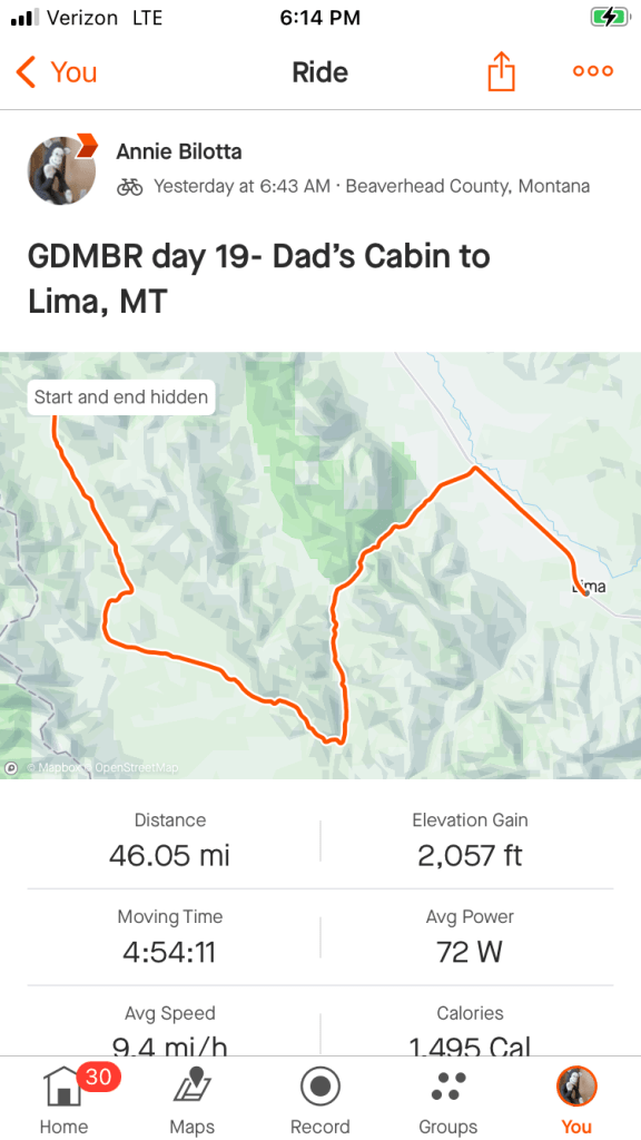 We arrived in the town of Lima( pronounced like Lima bean), population 220. I finally was able to talk to Erika and she calmed me down and suggested I continue the ride. She calls it my “pilgrimage” and says a pilgrimage always has ups and downs- literally and figuratively. I felt much better after talking to her and I’m glad I’m not going to throw in the towel so quickly.