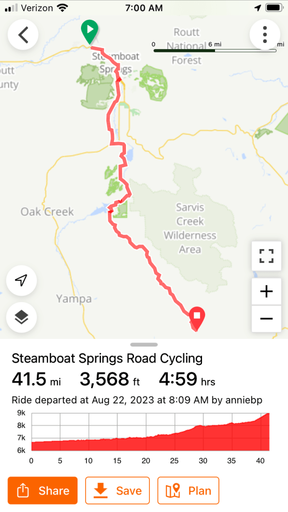 We left Steamboat Springs today on a lovely bike path along the river. The river is quite sulphuric and therefore is smelly.