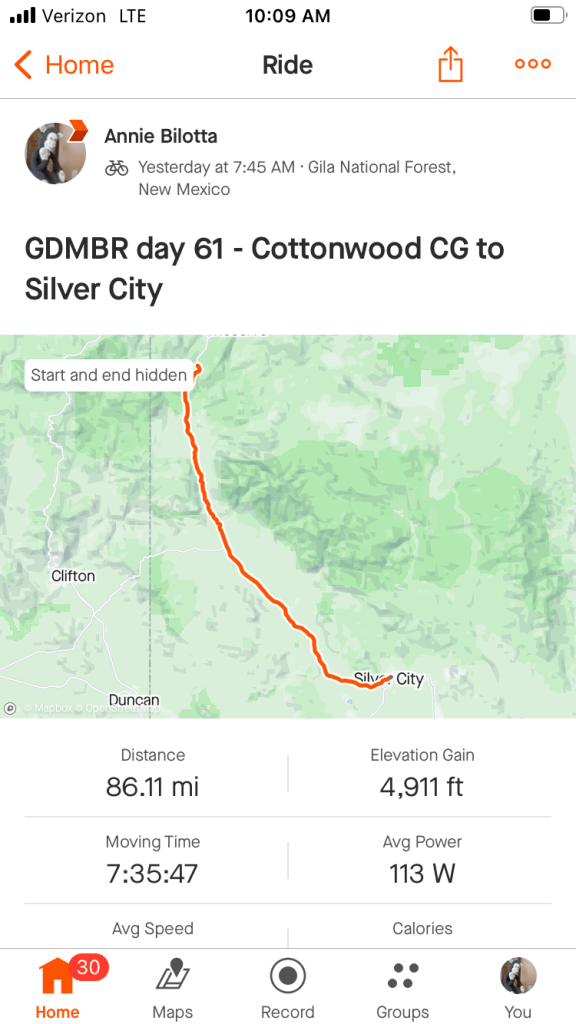 We decided to do a bigger day today and push all the way to Silver City. This will give us two rest days in Silver City before our final two days to the border.