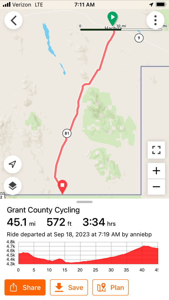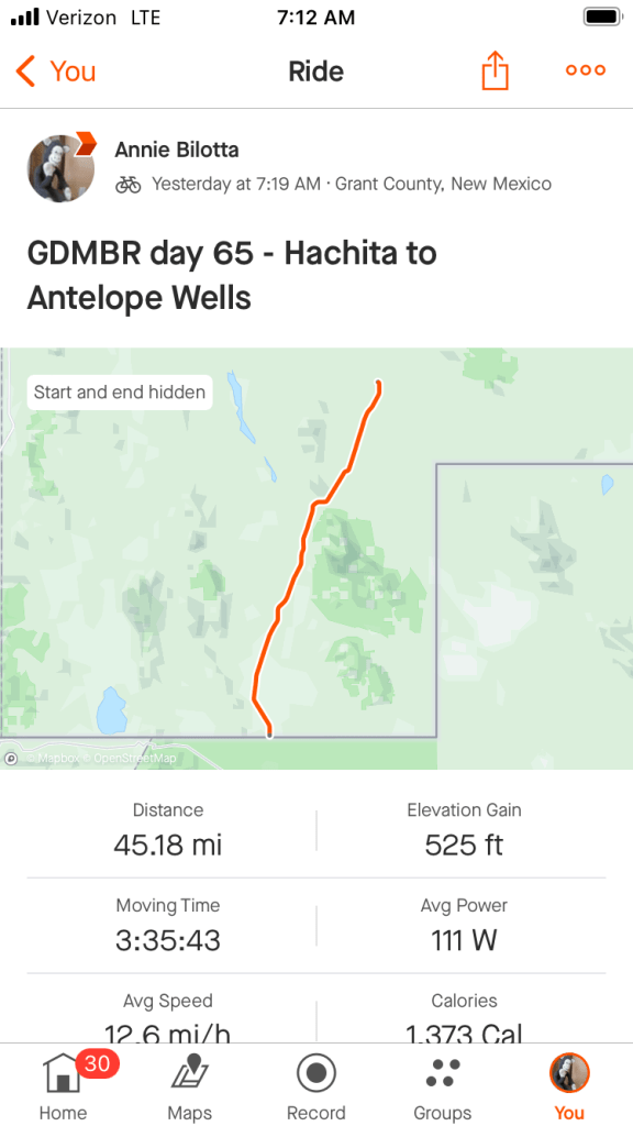 Lots of headwind, I had to work hard these last miles! There were a few tarantulas on the road and I accidentally rode over one.